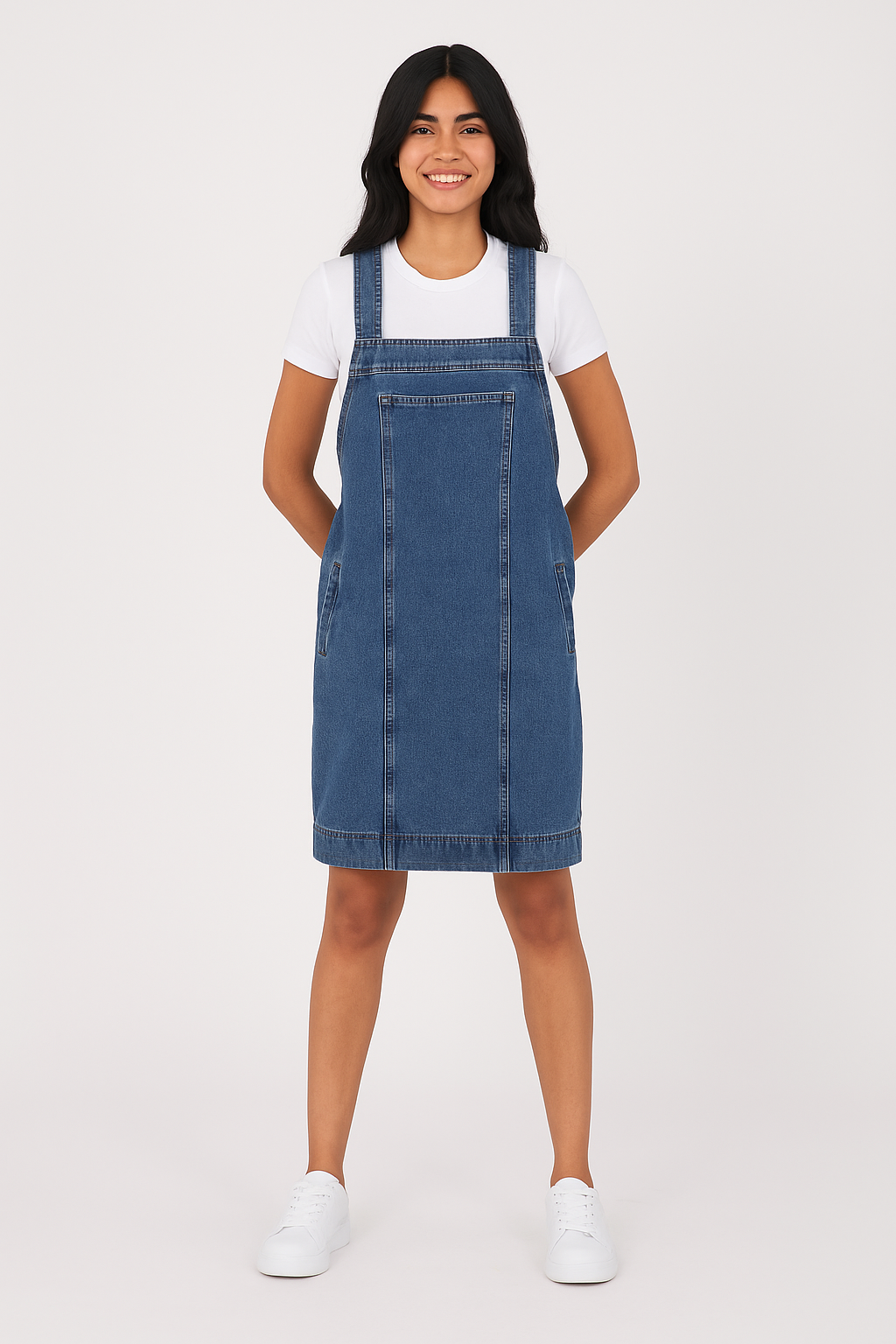 Denim Cool Salopet Elbise, zamansız jean dokusunu modern bir tasarımla buluşturuyor. Rahat kesimi ve minimalist çizgisiyle günlük hayatta özgür bir stil sunar. Basic tişört ve sneaker ile spor-şık bir hava yakalayabilir, crop top ve sandaletlerle yaz enerjisini yansıtabilirsin.