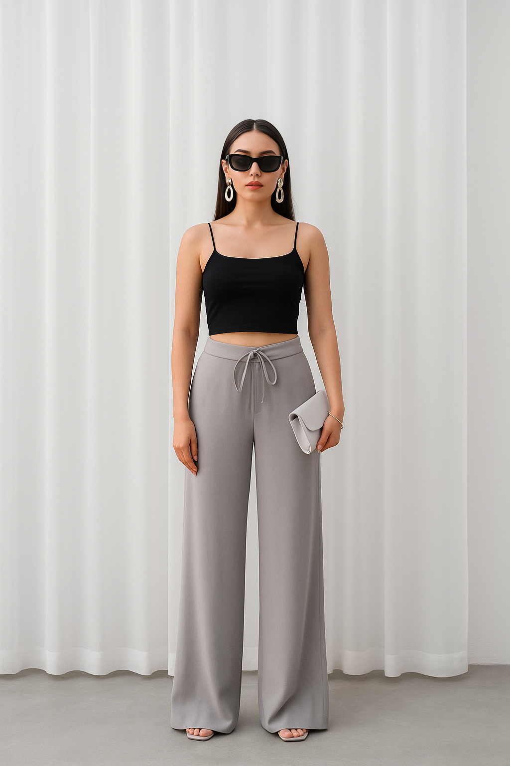 Minimalist çizgisiyle öne çıkan Gri Aura Palazzo Pantolon, sade ama güçlü bir stilin anahtar parçası.