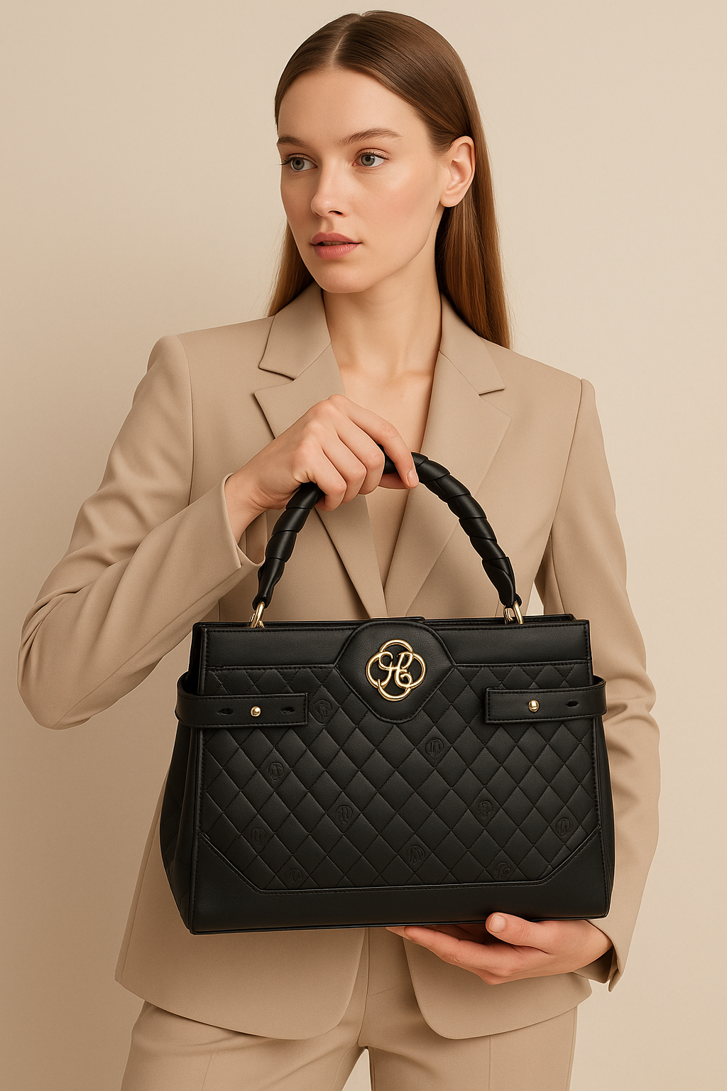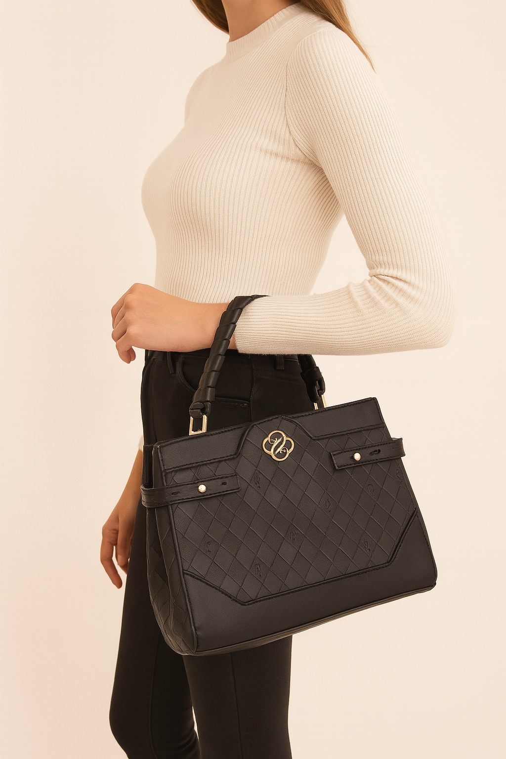 LAROSSA siyah el çantası, modern tasarımı ve zarif detaylarıyla günlük stilinize sofistike bir dokunuş katar. El işçiliğini yansıtan kare desenli yüzeyi ve altın rengi zarif logo detayı ile lüks bir görünüm sunar. Güçlü sap yapısı sayesinde elde taşınabildiği gibi, geniş iç hacmiyle günlük tüm ihtiyaçlarınızı düzenli bir şekilde saklamanızı sağlar. Şık duruşuyla ofis stiline, davet kombinlerine ve şehir yaşamına uyum sağlar. Dayanıklı malzemesi ve dikkat çeken tasarımıyla gardırobunuzun vazgeçilmez parçalarından biri olmaya aday.