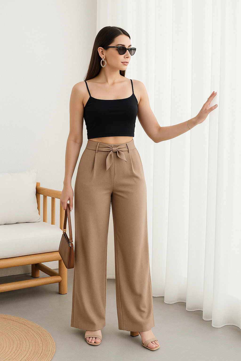 İster basic crop bir bluzla gündüz şıklığı, ister topuklu ayakkabılarla akşam zarafeti… Bu pantolonla her kombin sade ama etkileyici.